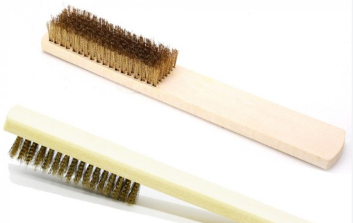 Bàn chải được làm từ sợi đồng với thiết kế cán gỗ dễ cầm, dễ sử dụng.