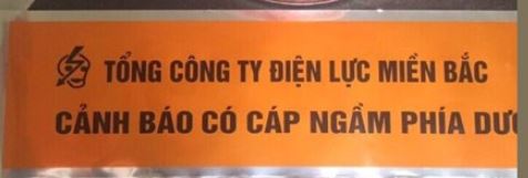Nội dung in ấn: “TỔNG CÔNG TY ĐIỆN LỰC MIỀN BẮC – CẢNH BÁO CÓ CÁP NGẦM PHÍA DƯỚI ”. Có thể in các nội dung theo khách hàng yêu cầu riêng.