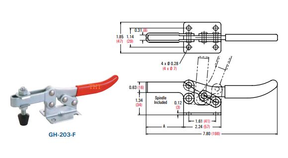 Cam kẹp GH203F là kẹp định vị ngang được sử dụng trong công nghiệp để gá kẹp nhanh sản phẩm, kẹp kiểu ngang nghĩa là ở trạng thái giữ sản phẩm thì tay cầm của kẹp song song với bề mặt sản phẩm kẹp.