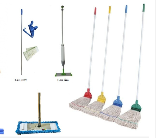 Cây lau khô hay còn gọi là cây đẩy bụi sàn: Cây đẩy bụi thường là những loại cây có bàn lau hình chữ nhật, tấm lau sợi cotton. Dùng gom rác bụi ở những khu vực sảnh công công trong các khu vực như bệnh viện, sân bay, nhà máy,…