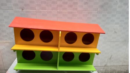 Chuồng chim được làm bằng gỗ thông sơn màu xanh, vàng, đỏ ...hoặc theo yêu cầu.