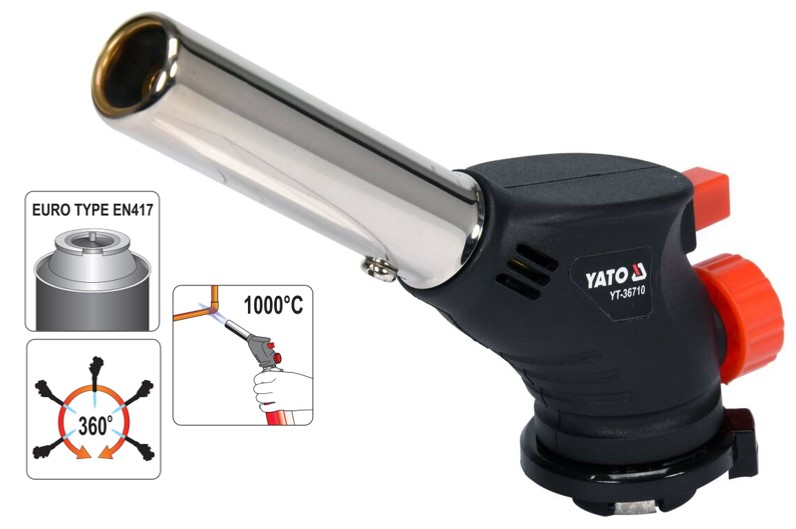 Đầu Khò Gas Mini Yato YT-36710 (1kW) – Xoay 360 Độ Linh Hoạt, Tiết Kiệm Gas