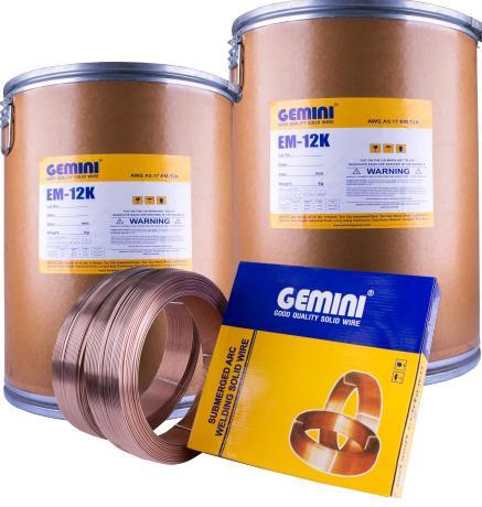 - Ưu điểm cơ bản của hàn tự động và bán tự động dưới lớp thuốc của dây hàn Gemini EM – 12K là đảm bảo chất lượng của liên kết mối hàn tốt – đồng đều, năng suất cao và tiết kiệm được dây hàn.