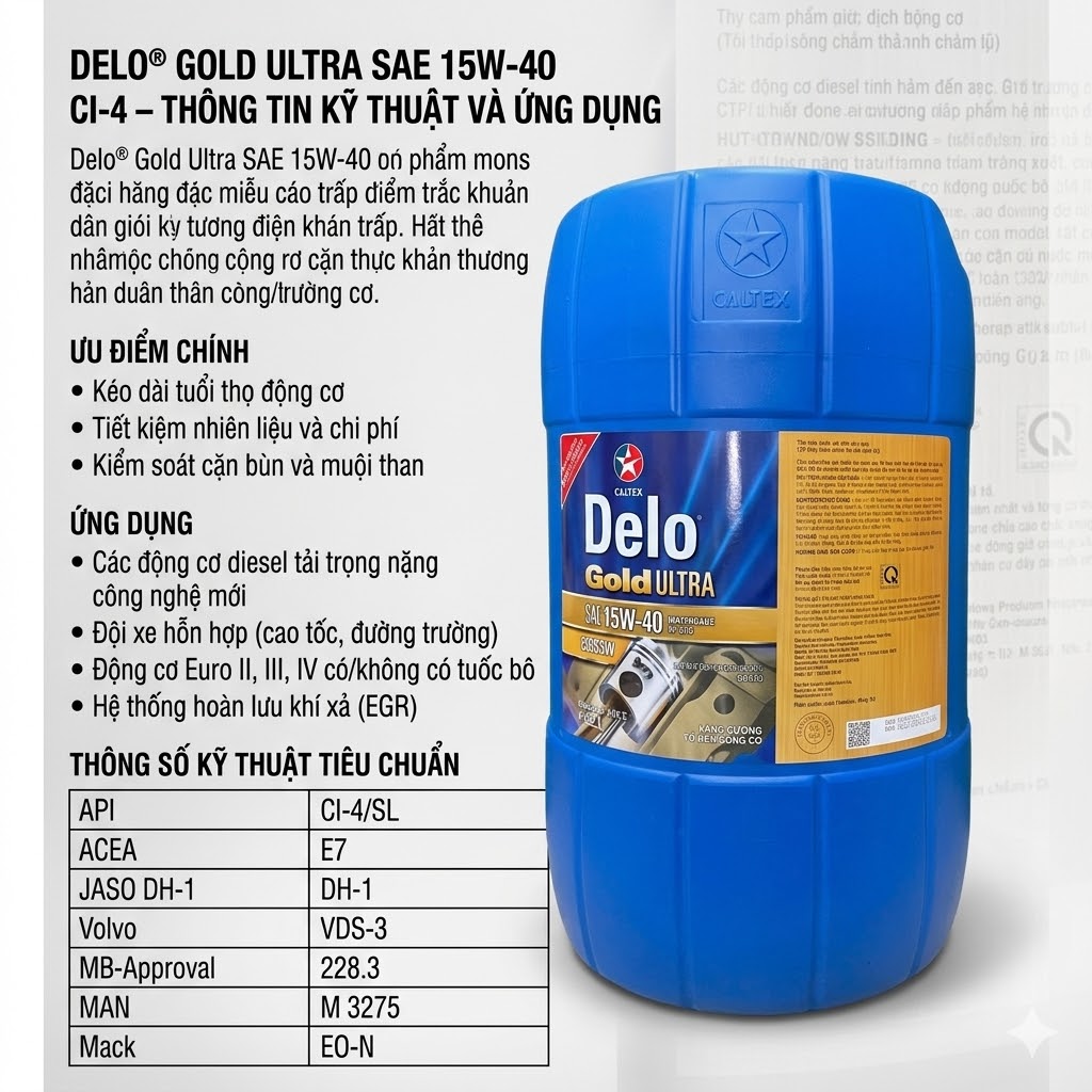 1. Thông số kỹ thuật Delo® Gold Ultra 15W-40