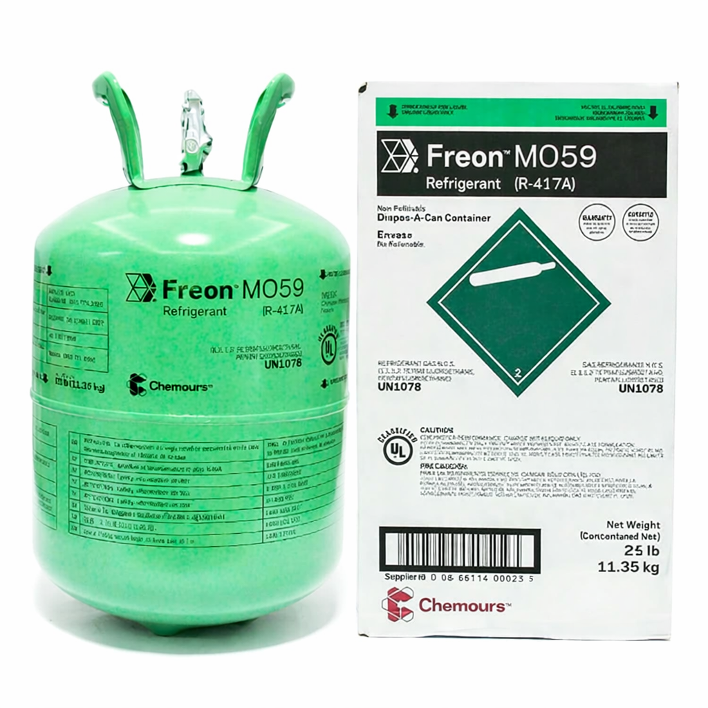 Gas lạnh R417A Chemours Freon MO59 là môi chất lạnh HFC không gây hại tầng ozone, được thiết kế như một giải pháp "Drop-in" (thay thế trực tiếp) tối ưu cho Gas R22 trong các hệ thống điều hòa và làm lạnh thương mại. Với trọng lượng 11.35kg, sản phẩm từ thương hiệu Chemours (USA) luôn đứng đầu về độ ổn định và hiệu suất.