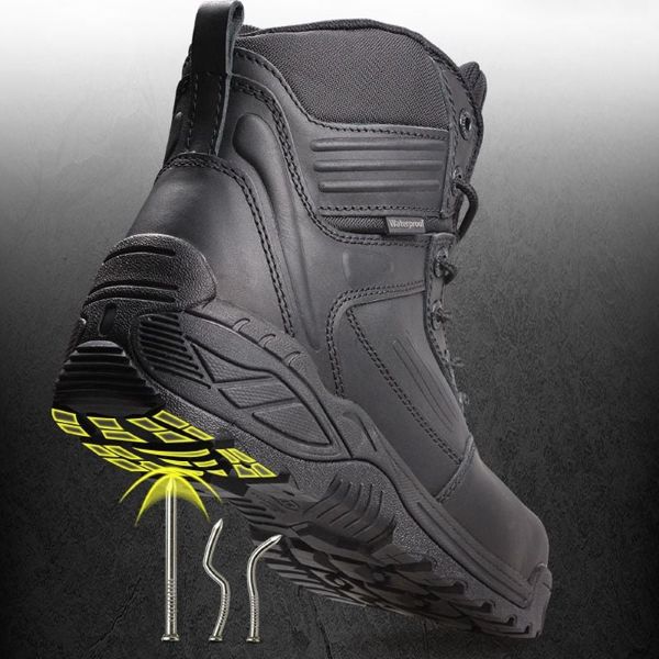 Với mũi Composite và lớp lót chuyên dụng, đôi giày này giúp loại bỏ nỗi lo dập ngón hay đinh xuyên thấu. Đặc biệt, vật liệu Composite giúp giày nhẹ hơn, không gây mỏi chân khi phải di chuyển liên tục suốt 8-10 tiếng.
