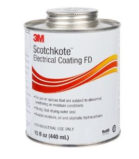 - 3M Scotchkote Electrical Coating FD được thiết kế để sử dụng như một lớp đệm bên ngoài cho các ứng dụng băng keo PVC chịu quá nhiều dầu. Nó được thiết kế để cải thiện khả năng chống chịu thời tiết của mối nối hoặc mối nối được dán băng keo.