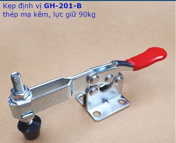 GH-201-B là kẹp định vị hay cam kẹp, chất liệu thép mạ kẽm, chiều dài 145mm và có lực giữ 90kg, GH-201-BSS là công cụ quan trọng trong ngành chế biến gỗ, cơ khí, dùng để kẹp hay giữ các vật dụng đang chế biến.