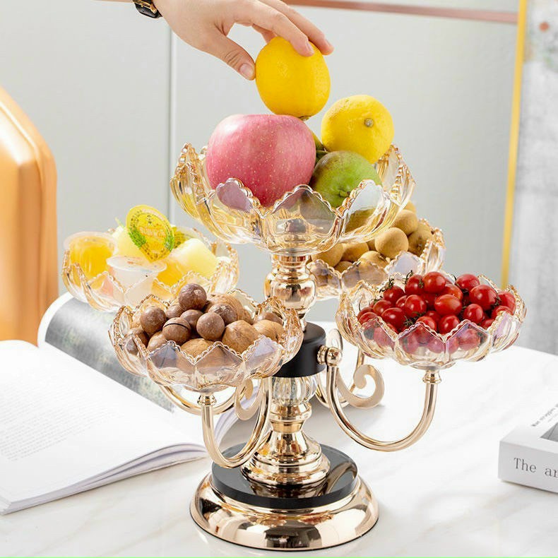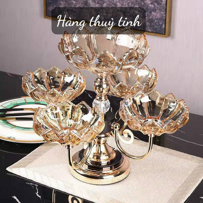 Bàn ăn phòng bếp, bàn phòng khách sẽ trở nên sang trọng và nổi bật với đĩa trái cây thủy tinh pha lê khi làm đồ trang trí trong phòng. Chiếc đĩa với 5 ngăn hết sức đa năng, thuận tiện.