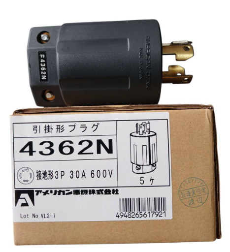 Phích Cắm Chấu Khóa American Denki 4362N (3P+E, 30A, 600V) – Thân Nylon Chống Cháy, Tiêu Chuẩn Công Nghiệp Nhật Bản
