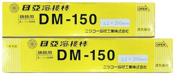 DM-150 sử dụng dây lõi sắt-niken và được phủ một từ thông đặc biệt, vì vậy nó là điện cực hàn cho gang có thể được sử dụng với dòng điện đặc biệt thấp so với các sản phẩm của các công ty khác. Do đó, độ cứng của phần nhiệt hạch là nhỏ, và hàn có thể dễ dàng gia công. Đặc biệt, tính chất cơ học tuyệt vời của nó làm cho nó phù hợp để hàn gang cứng như sắt dễ uốn.