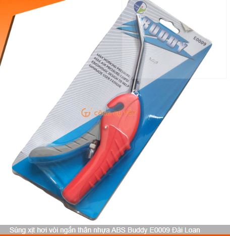 Súng xịt hơi vòi ngắn thân nhựa ABS Buddy E0009 Đài Loan là phụ kiện lắp vào máy nén khí để tạo ra một luồng khí lớn được ứng dụng vào các hoạt động kinh doanh, sinh hoạt hằng ngày như xì khô các vật dụng ẩm, thổi các mảnh vụn cứng đầu, làm sạch bụi,nước ở các vị trí bên trong không thể lau chùi bằng tay, ...