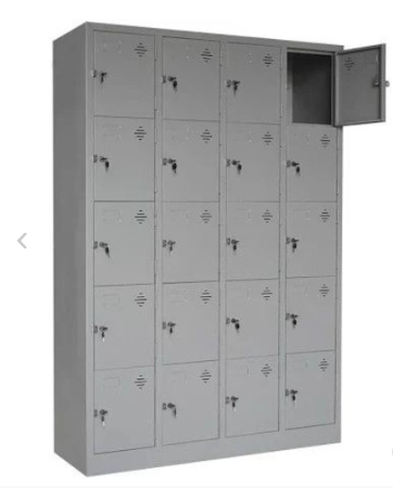 Tủ sắt locker 20 ngăn là loại tủ tiện dụng đối với văn phòng công ty và khu công nghiệp. Tủ locker được chia làm 20 ngăn riêng biệt. Các khoang tủ có kích thước bằng nhau và được khóa bằng một ổ khóa riêng. Cánh tủ có móc khoá ngoài và ô thoáng. Tủ lọcker có nhiều ngăn chứa được số lượng đồ lớn.