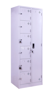 Tủ được làm từ sắt phun sơn tĩnh điện giúp chống oxy hóa, gỉ, tác động môi trường. Tủ được chia làm 6 ngăn, mỗi ngăn có 1 ổ và chìa khóa riêng biệt. Tủ thiết kế rộng rãi cho việc đựng tài liệu văn phòng, hồ sơ được cất giữ đảm bảo. Sản phẩm tủ locker sắt hiện đại thể hiện ở chất liệu mới, màu sắc hài hòa trang nhã là niềm cảm hứng cho sự đam mê sáng tạo trong công việc.